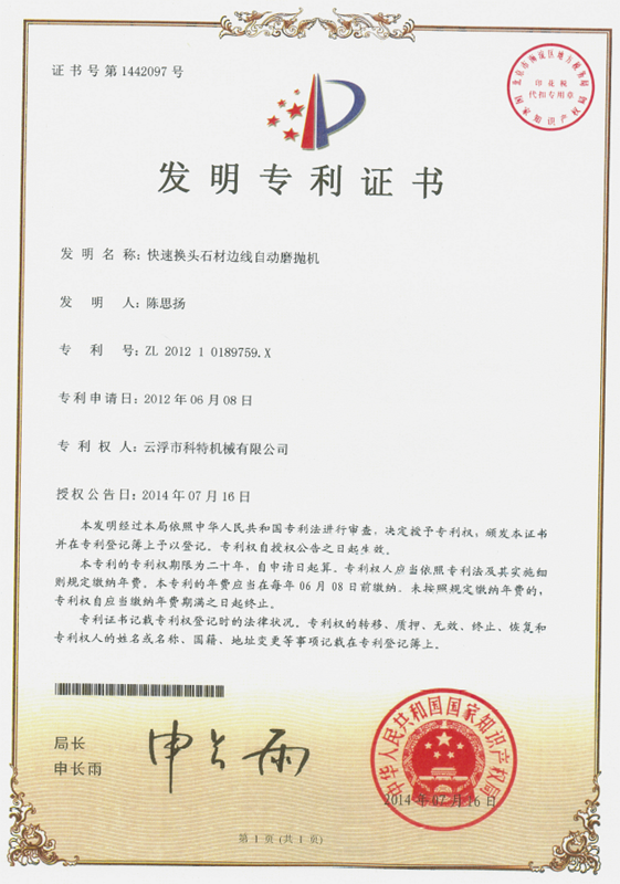 企業(yè)組建了“云浮市石材機械裝備工程技術研究開發(fā)中心”,并與高校和科研院所密切合作,致力于光機電一體化產(chǎn)品的研發(fā)、生產(chǎn)、銷售和服務。主要產(chǎn)品有框架鋸、全自動連續(xù)磨拋機、橋式自動切割機、全自動仿形石線機、數(shù)控金剛石繩鋸、裁切機等。產(chǎn)品具有自動化程度高、加工精度高和生產(chǎn)效率高等特點。產(chǎn)品除國內(nèi)銷售外,還出口到歐美、東南亞、韓國、印度、中東、非洲、俄羅斯、澳大利亞等國家和地區(qū),深受用戶好評!皹蚴阶詣忧懈顧C”被認定為廣東省高新技術產(chǎn)品,擁有發(fā)明專利1項、實用新型專利1項。